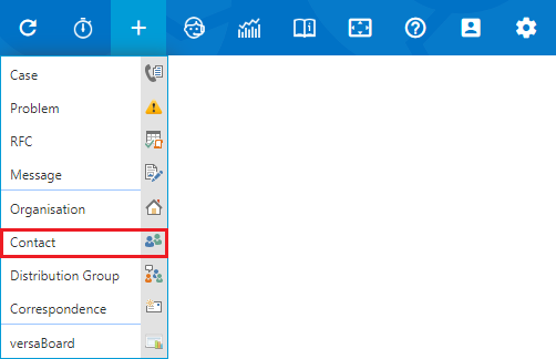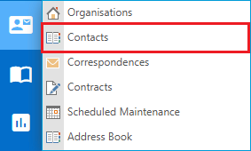 New Contacts can be added by selecting the Create New option on the Navigation Header and selecting Contact
