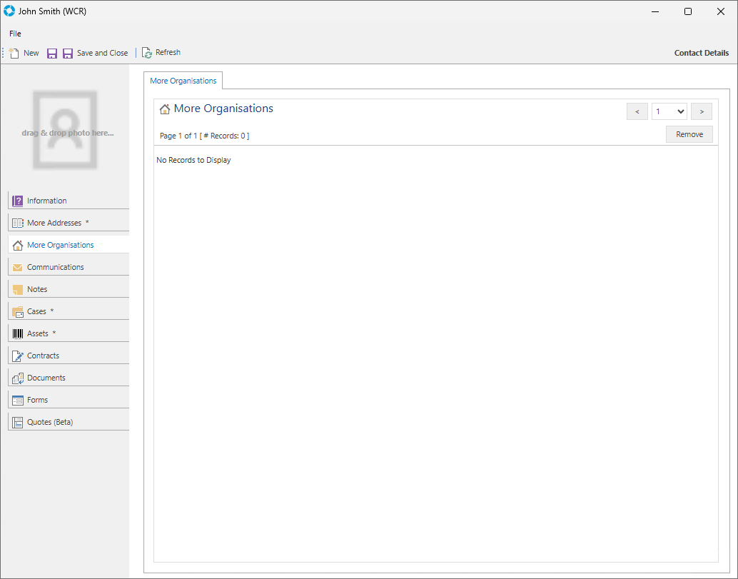 In the More Organisations section you can add multiple Organisations to a Contact. To add a new Organisation select the 'New' (