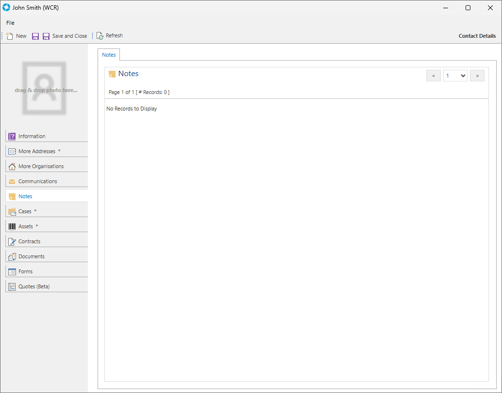 In the Notes section you can add notes to the Contact. To add a new Note select the 'New' icon (