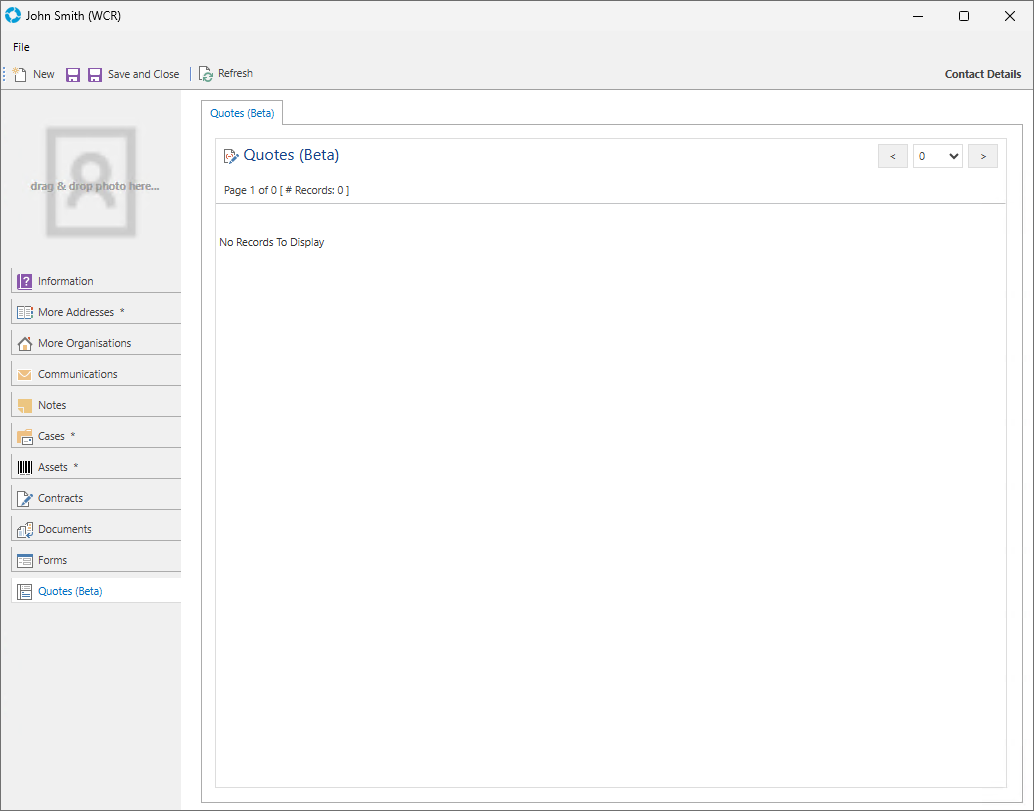 In the Quotes section you can view and create quotes and invoices that can then be converted to PDF format for sending. To create a new Quote for the Contact select the 'New' icon (