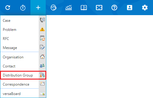 A Distribution Group can be created by selecting the Add icon on the Navigation Header and selecting Distribution Group.