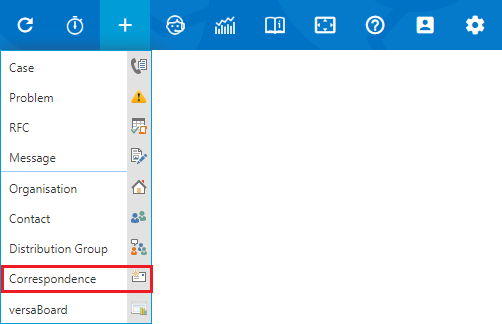 To send an email via versaCRM select the Create New icon on the Navigation Header and click Correspondence.
