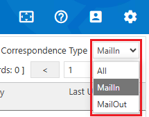 The Correspondence Type filter at the top right of the page will allow you to filter the correspondences by All, MailIn (Received Emails), or MailOut (Sent Emails).