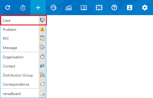 A Case, Request, Incident, or Call is a fundamental part to any Help Desk application and is where issues or requests are logged and actioned. Typically Cases are created via an email that has been sent to a configured email account in the system. However, they can also be created manually by selecting the New Item icon on the Navigation Header and Case from the listed choices.