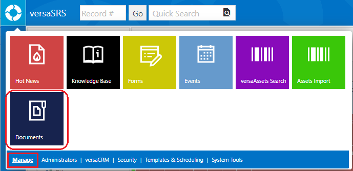 Documents can be viewed or managed by selecting the Documents option from the versaSpinner - Administrators tab.