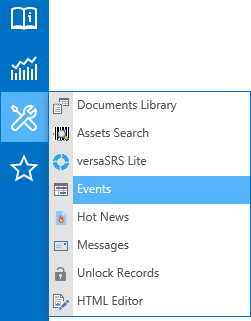 The Events can be viewed by selecting the Events option from the Tools menu in the Navigation Sidebar. You can also view Events via My Calendar.