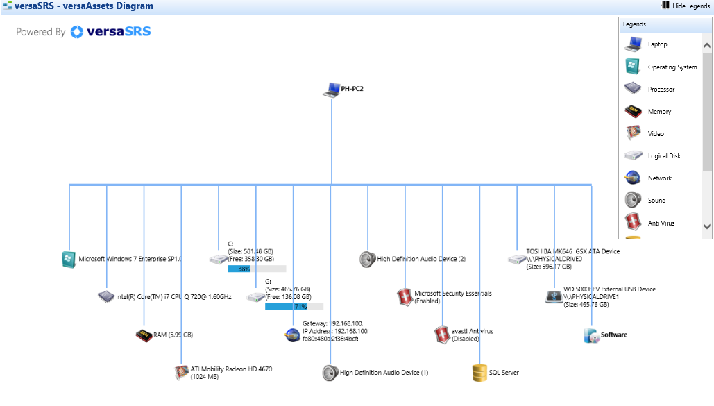 Within the network diagram you can double click on Assets to view further details.