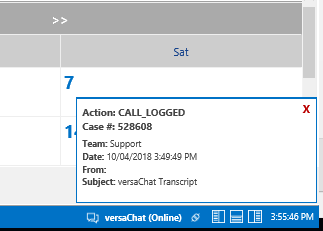 The Notifications can also be configured to prompt directly in versaSRS as pop-up Alerts (pictured below).