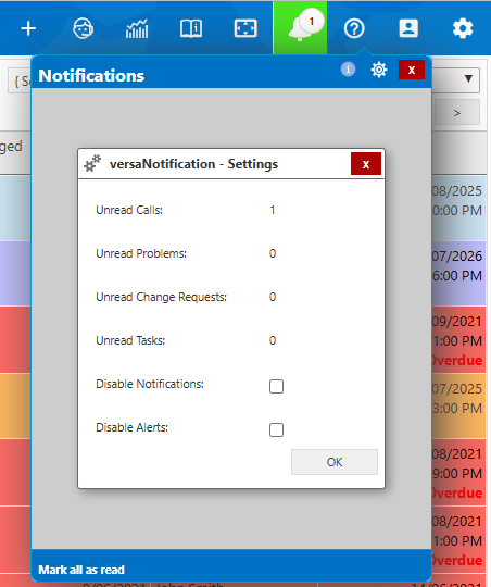 The Alerts can be enabled/disabled within the Notification Settings, which are accessed by clicking the Cog icon in the Notification window.