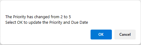 Administrators can create Key Sets that have a specific Priority associated with them. Upon categorising an existing Case with a Key Set that has an assigned Priority the User will be prompted to update the current selection, clicking OK will change the Priority and Due Date accordingly.