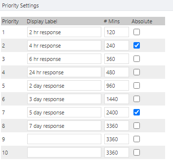 Note: You must enter a number value in the # Mins field for each Priority, even if not all Priorities will be used.