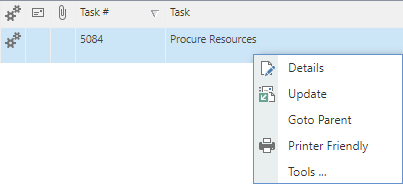 The following right-click menu is displayed when right-clicking on a Task in the main window