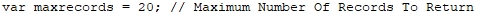 The maximum number of results returned is set to 20 by default. This value can be changed by editing the JavaScript property maxrecords (see ServiceCatalogue.ascx).