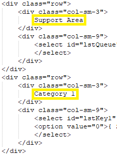 Note: Support Area and Category 1 are mandatory to perform a search. The labels of these fields can be changed by editing the file ServiceCatalogue.ascx