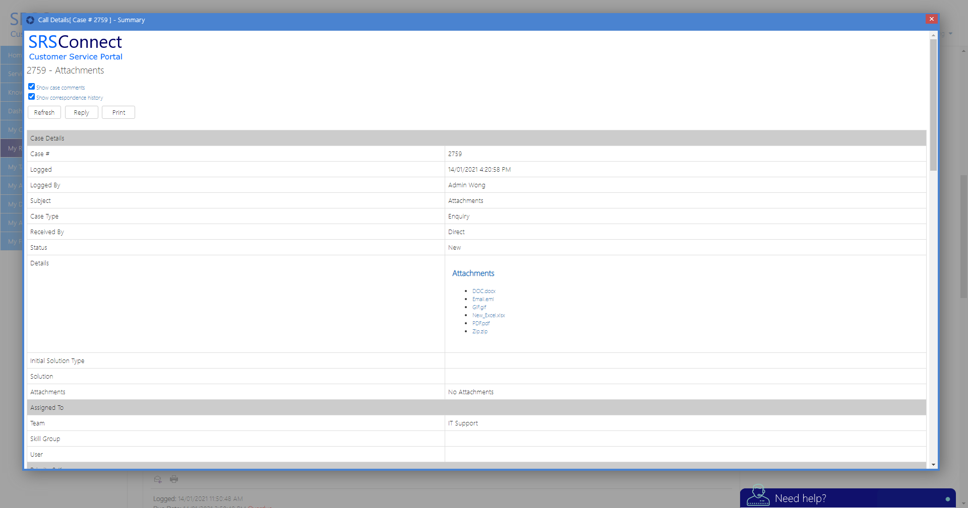 ). When this is done a print friendly view containing the Case details as well as comments and correspondence made against the Case. If you wish to see only the Case comments or just the correspondence history then you can select this by un-ticking the associated button.