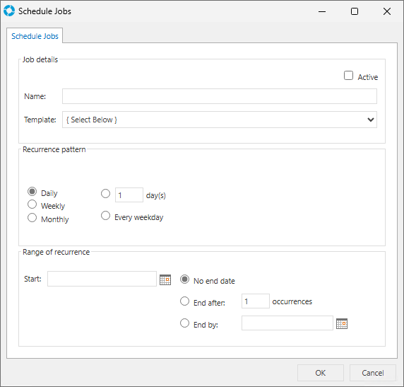 The Recurrence pattern section contains Daily, Weekly, and Monthly options, that will allow for any pattern to be configured.*
