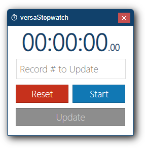 This will display the Stopwatch with the ability to Start, Stop, and Reset the count, as well as directly Update a Record with the time recorded by inputting the Record ID.