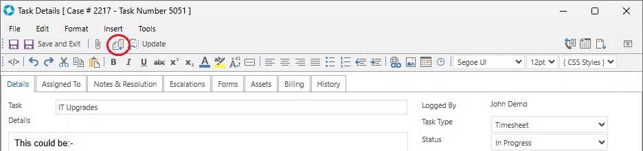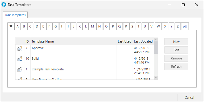 Task Templates allow predefined Task details and categorisation to be saved and applied as required to new or existing Tasks.