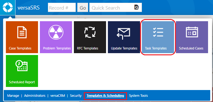 Task Templates are created by selecting the Task Templates icon from the versaSpinner - Templates & Scheduling tab.
