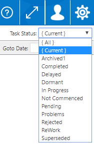 The Timesheet Tasks can be filtered by status with the Task Status drop-down filter in the top right of the screen.