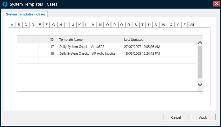 Select a Template and click 'Apply'.