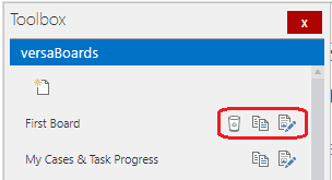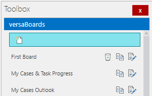 Within the ToolBox new versaBoards can be created, and existing ones can be edited and/or cloned.