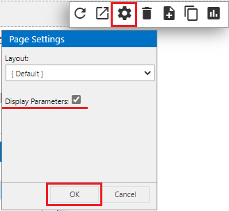 Once in Design Mode the Settings cog will be available in the Control options, select the Settings cog then check the Display Parameters option, and click OK to save.