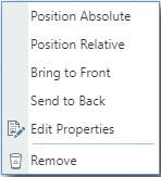 | Send to Back | When a Report has the position set to relative this option will make it appear last in the row of Reports |