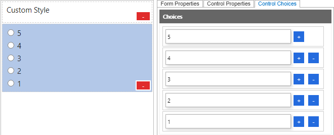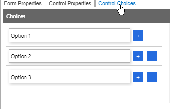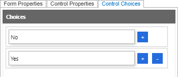 Step 3: Adding Choices on the Control Choices tab and Save the Form.