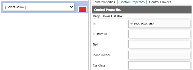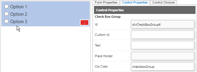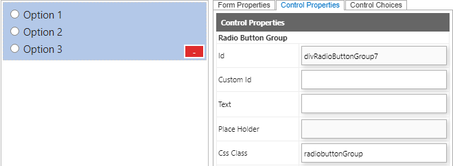 Note: Unlike Check Box Group and Radio Button Group, no Css Classes defines in the Control Properties tab as default.