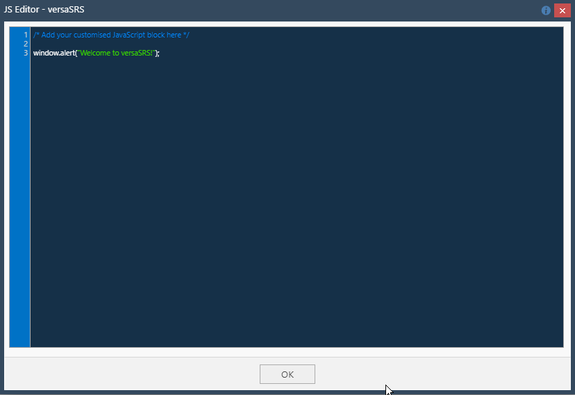 Double clicking the Text area in Control Properties to populate a JS Editor screen. The below is the example of the Script to populate a message when the Form is loaded.