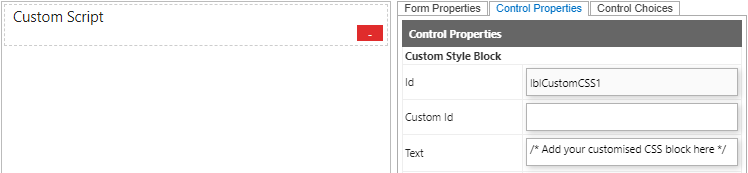 To enhance the functionality of the Forms, users can apply Custom Scripts into the Forms. The Custom Style can be dragged and dropped onto the Form.