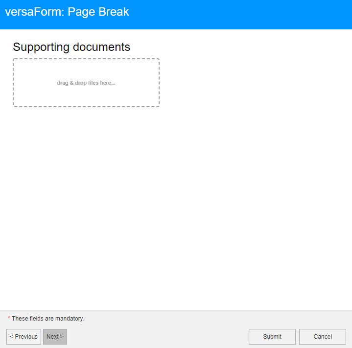 Result: The Paging button will show at the bottom left and the Submit button only shows in the last page of the Form.