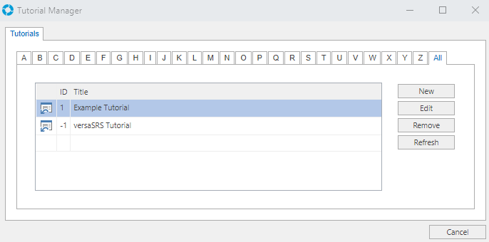 This will display the Manage Tutorials screen where Tutorials can be added, edited and deleted.